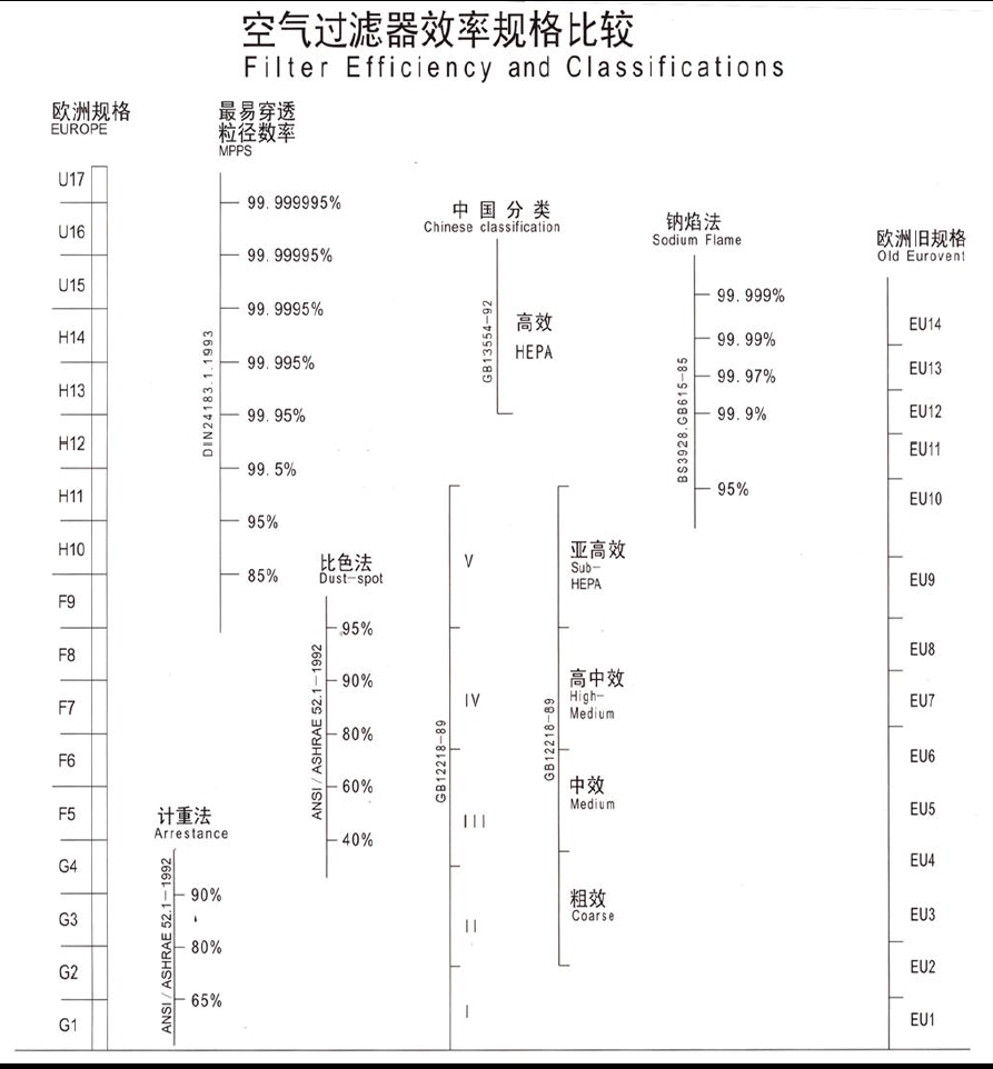 空氣過(guò)濾器效率規(guī)格比較