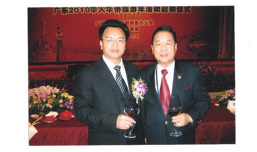 廣東省僑聯(lián)主席王榮寶同董事長(zhǎng)何國(guó)才先生(右)合影