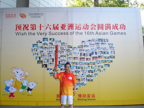 我司董事長何國才先生(新加坡廣東會館會長、廣東省海外交流協(xié)會理事、廣州市海外交流協(xié)會理事)榮為亞運會火炬手,于2010119日上午9點在越秀公園參加了亞運會火炬?zhèn)鬟f。以下是何國才先生參加亞運會火炬?zhèn)鬟f的相關圖片: