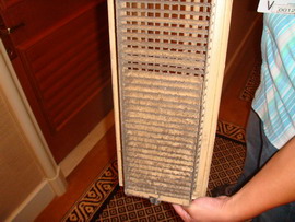 銀康處理前供風(fēng)口的柵格 銀康處理前風(fēng)機(jī)盤管的風(fēng)管