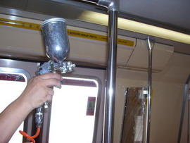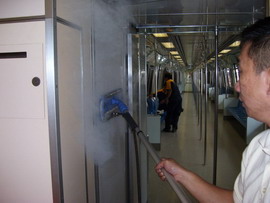 用蒸汽清潔車廂表面                            噴涂銀康納米銀和光觸媒