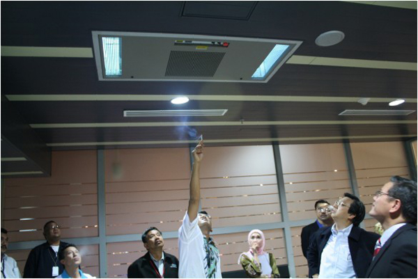 馬來西亞衛(wèi)生部部長(右二)在我司負責人陪同下于吉隆坡國際機場現(xiàn)場考察銀康凈化機實用效果