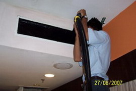 清洗前的FCU的出風(fēng)口                      工程人員正在吸出風(fēng)口的塵埃