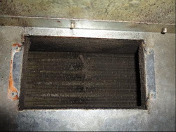 清洗前的風(fēng)機(jī)盤(pán)管 清洗后的風(fēng)機(jī)盤(pán)管