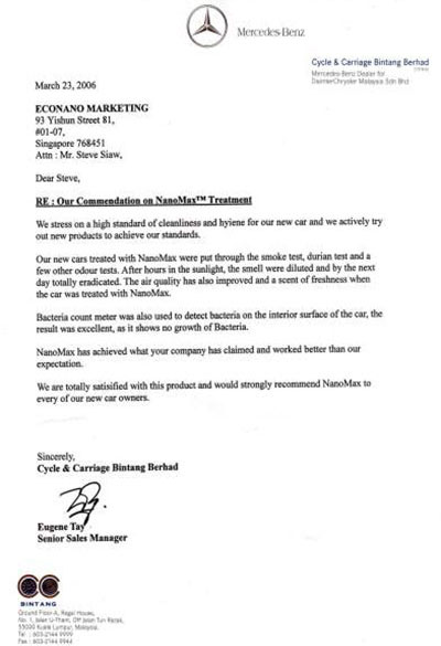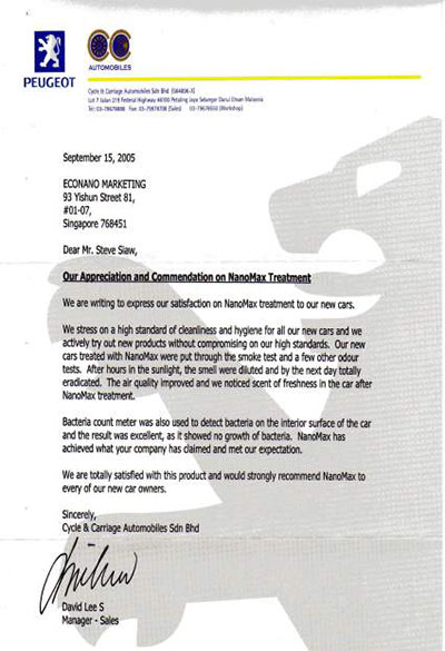 新加坡各品牌汽車對(duì)我司產(chǎn)品實(shí)用效果頒發(fā)認(rèn)證書 ↓