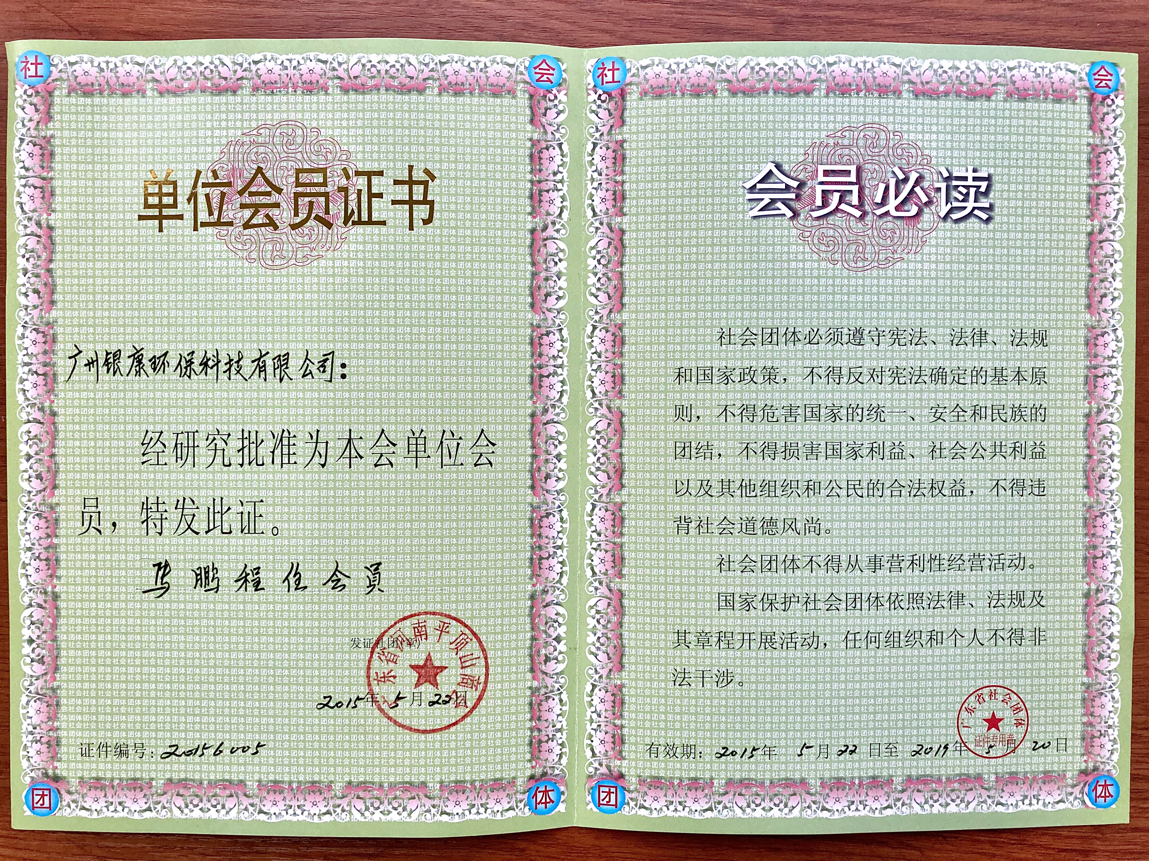 廣東省社會(huì)團(tuán)體單位會(huì)員證書。
