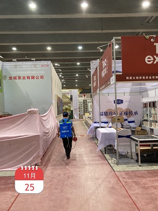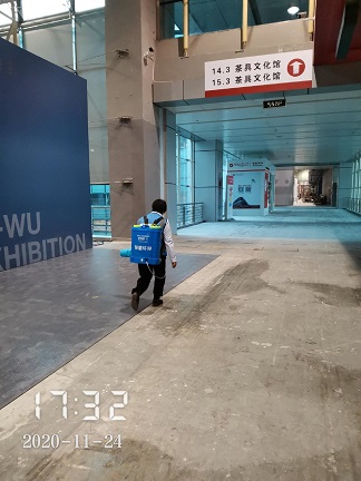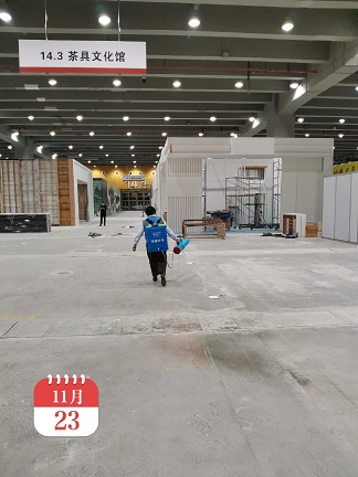 2020年11月23日-30日,銀康進(jìn)行琶洲國際會展中心C區(qū)-茶博會防疫消毒服務(wù)。以下是進(jìn)行消毒服務(wù)的相關(guān)圖片: