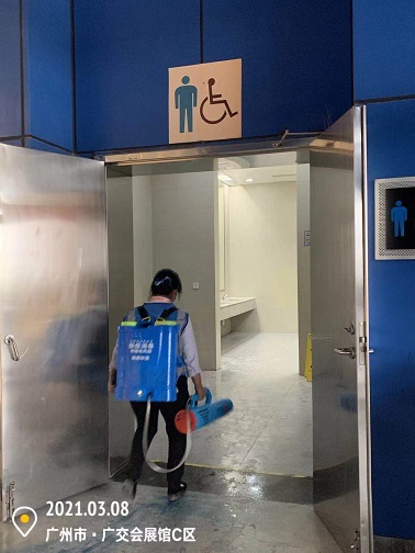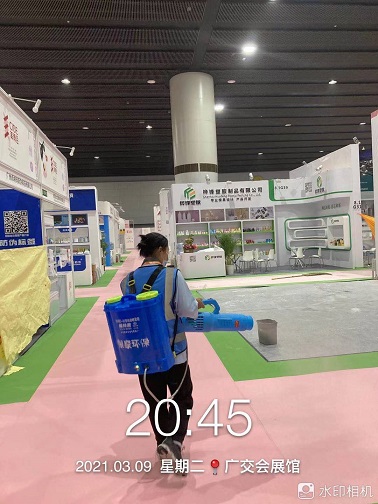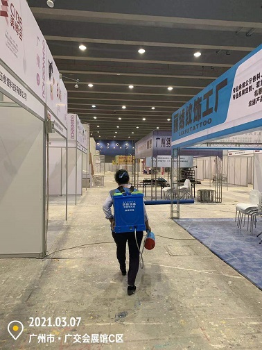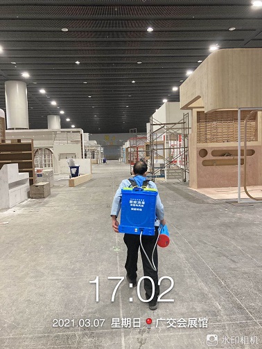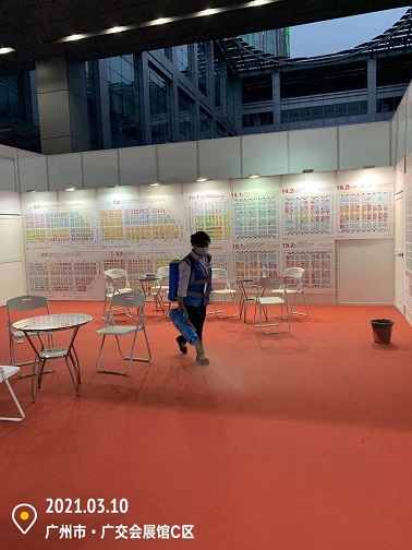 2021年3月7-12日,銀康公司承包琶洲國際會展中心A、B、C區(qū)共28個館-廣州國際美博會防疫消毒服務(wù)。以下是進(jìn)行防疫消毒服務(wù)的相關(guān)圖片: