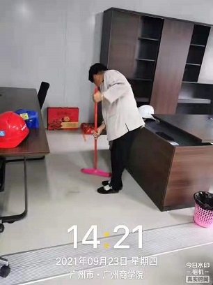 2021年9月22日,銀康入駐位于中新廣州知識城的廣州商學(xué)院教學(xué)樓擴建項目-中建八局項目部-日常保潔及會務(wù)接待綜合服務(wù)。