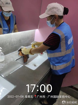 2022年7月5-11日,銀康承包廣州國(guó)際采購(gòu)中心-2022年第十二屆遮陽(yáng)門窗展覽會(huì)保潔及防疫消毒服務(wù)。 現(xiàn)場(chǎng)照片: 保潔及防疫消毒照片: